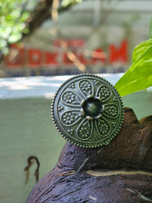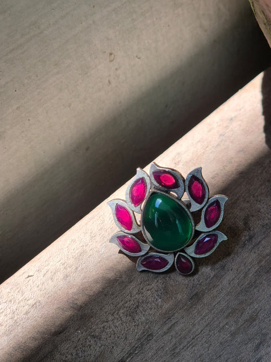 Spatika | Silver Plated Multicolour Stone Statement Ring