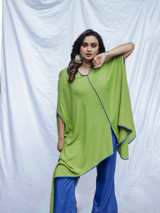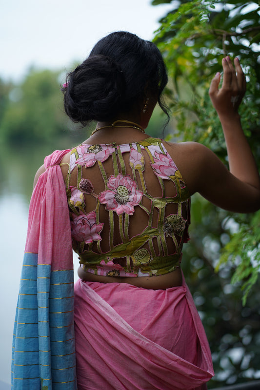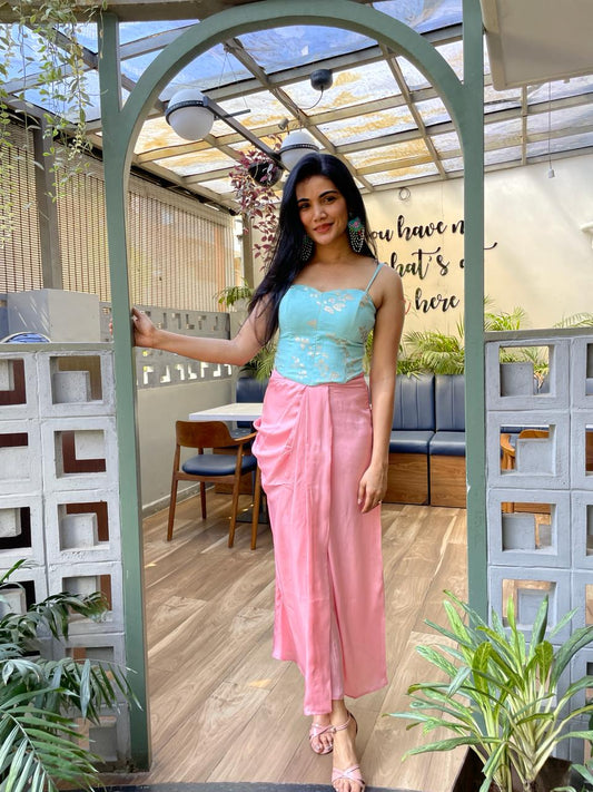 Sky Blue Corset Blouse & Pink Drap Skirt