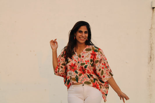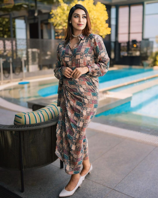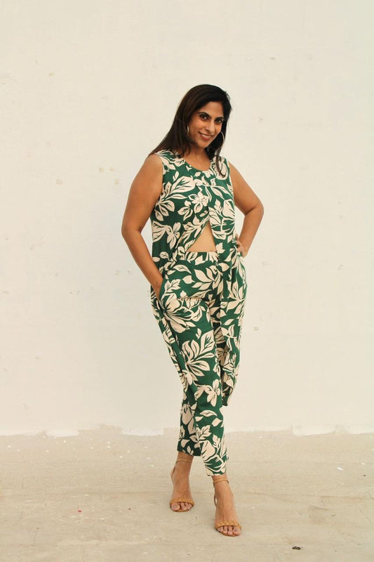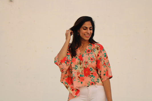 Flower Patched Print Shirt & Drape Skirt Coord Set