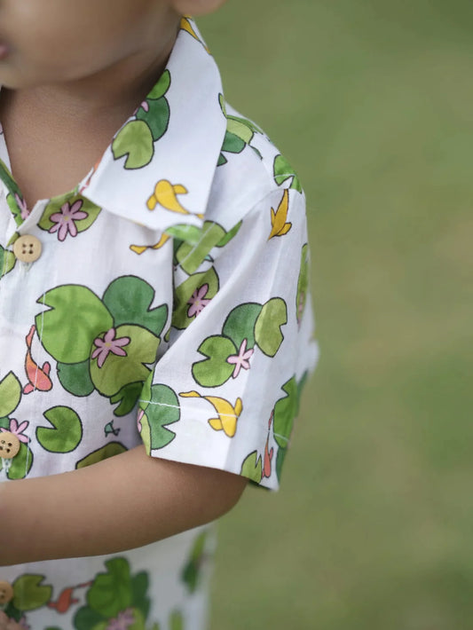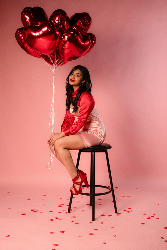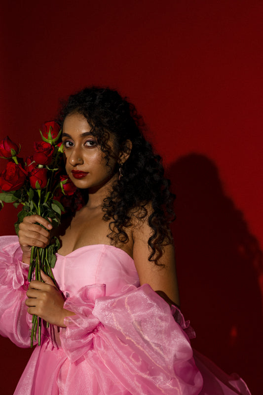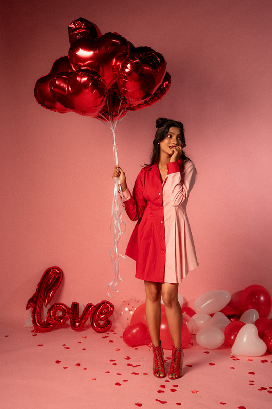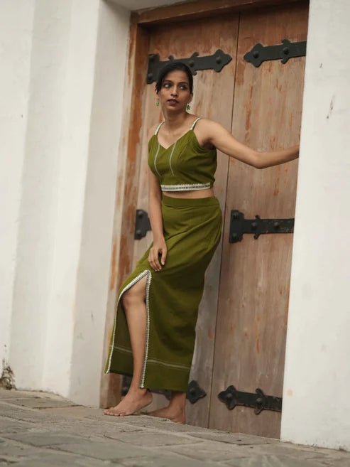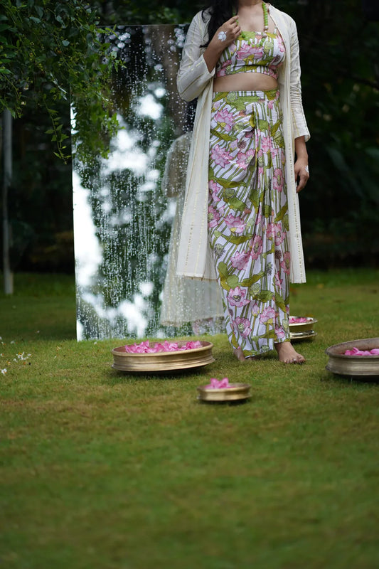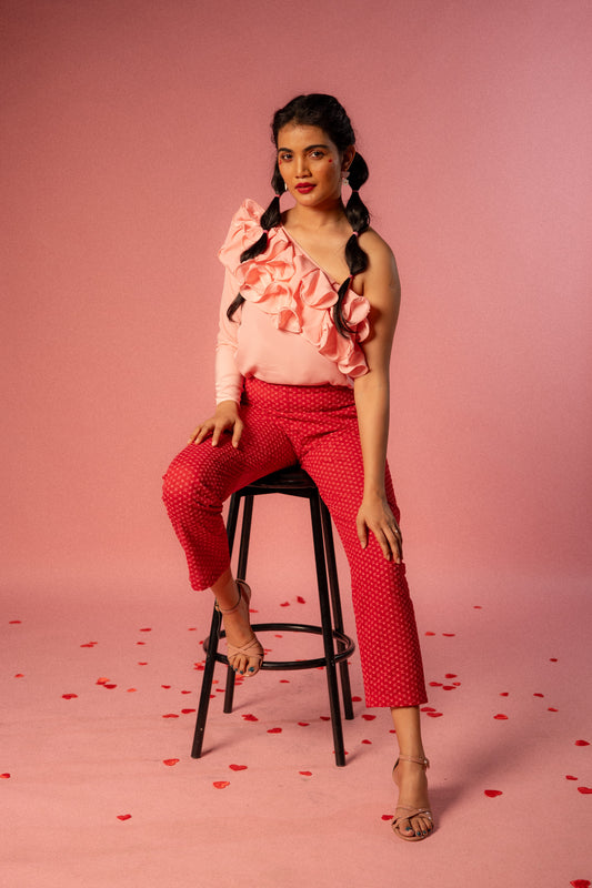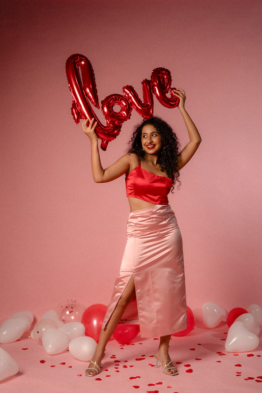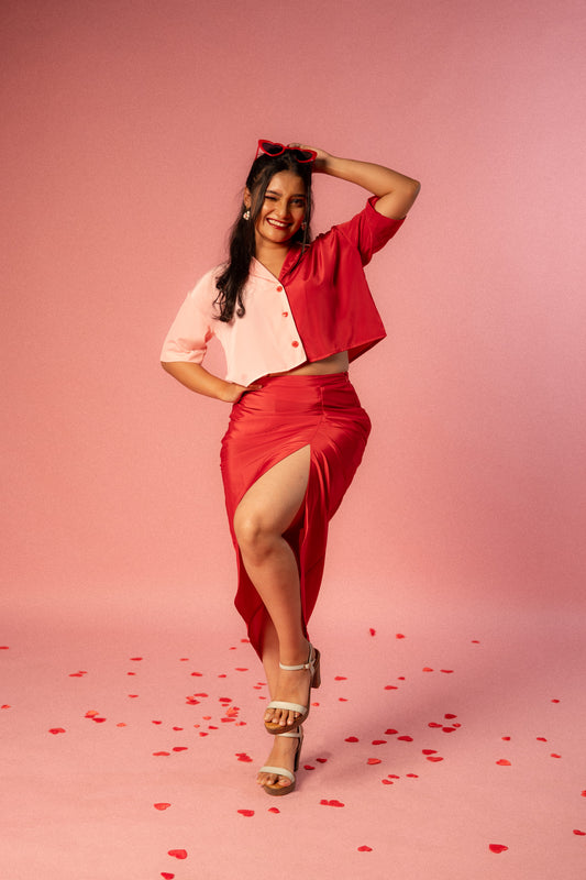 Sruthi Two-Shaded Crop Shirt & Red Draped Skirt Set