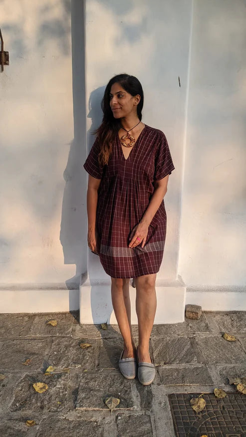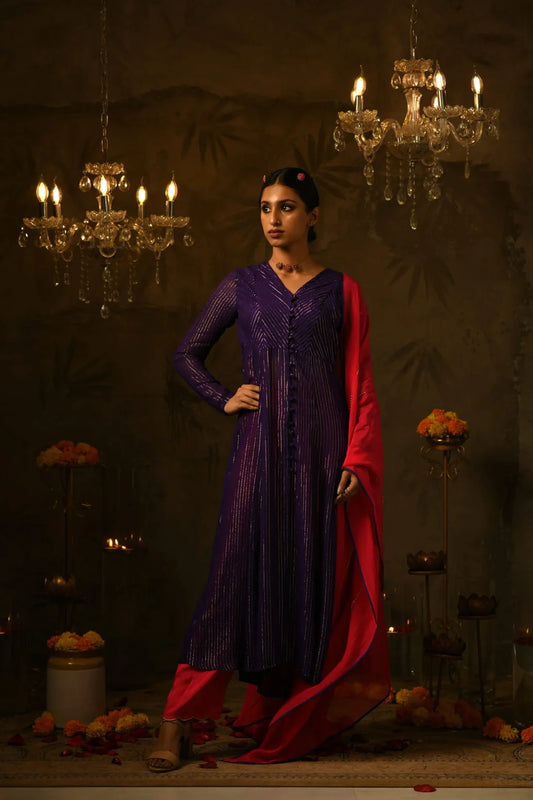 Out of StockNethra Pin stripe Kaavi Kafthan in Plum Checks