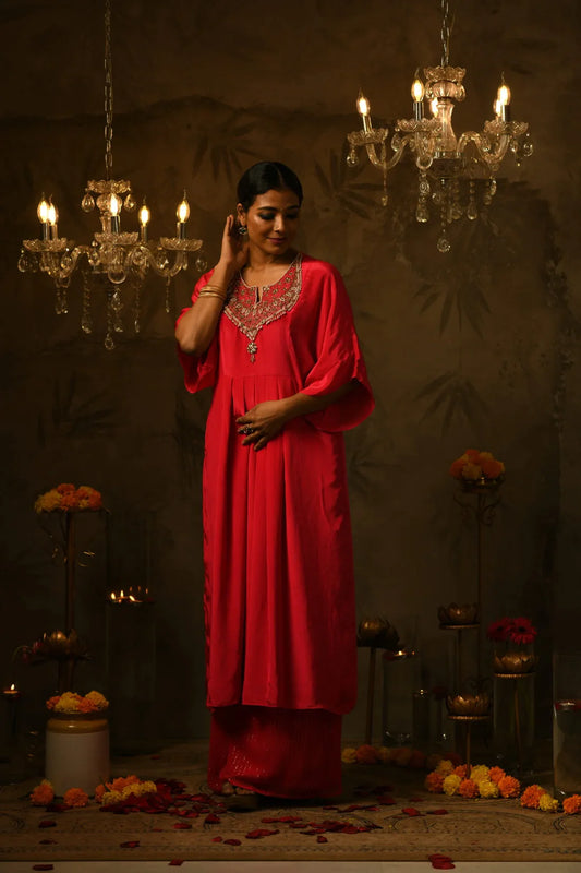 Sruthi Embroidered Kaftan & Kasavu Strip Palazzo Set