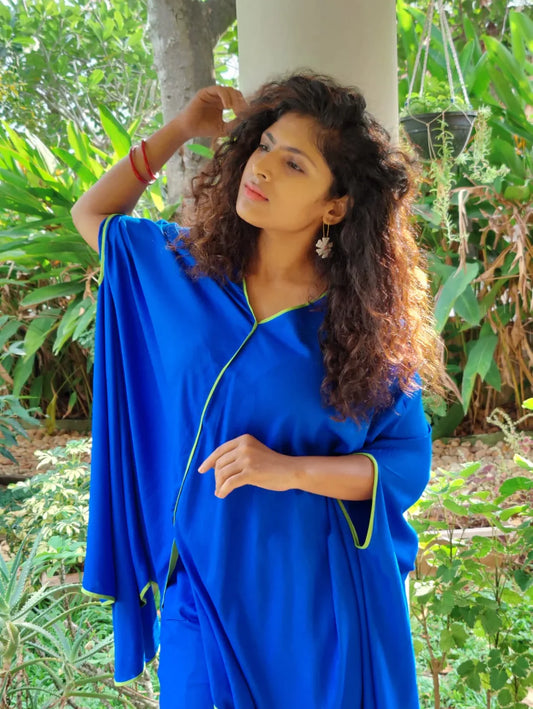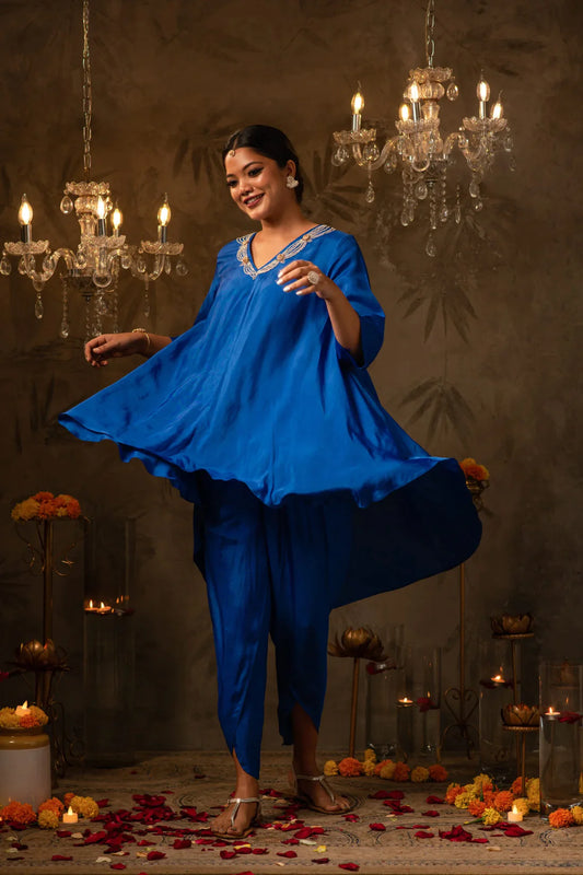 Blue Poncho Kaftan Set