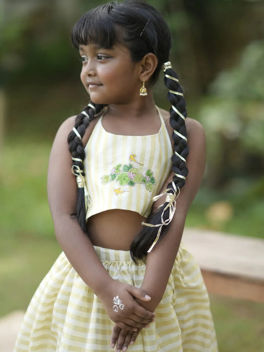 Zara Kamalam Embroidered Blouse + Onam Kasavu Stripe Skirt Set