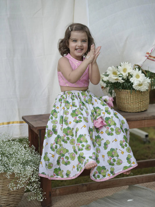 Janvika Pink Blouse + Kamalam Printed Skirt Set