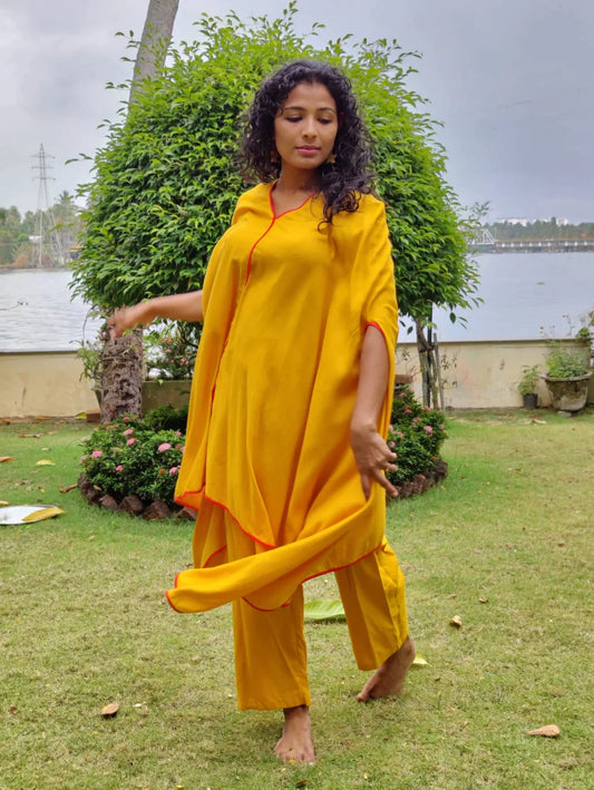 Yellow Poncho Kaftan Set