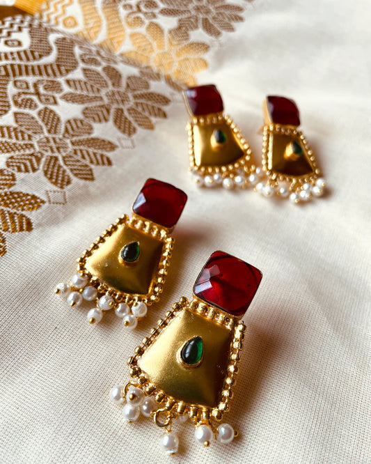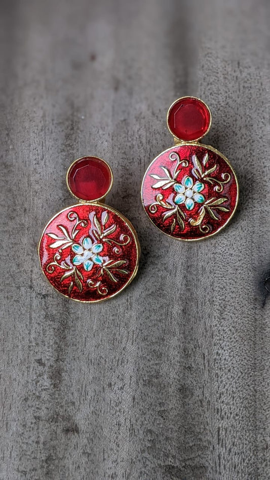 CRIMSON RED MEENAKARI DUAL DROP STUDS