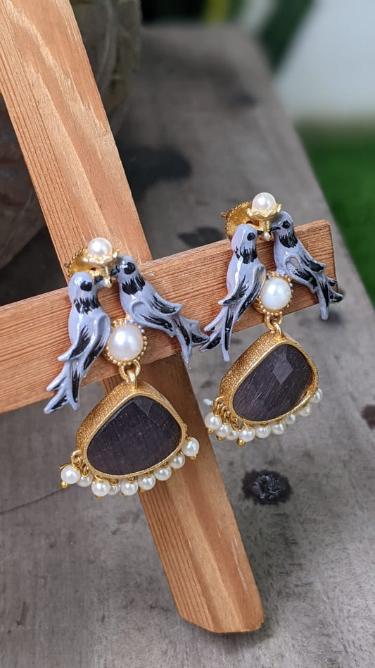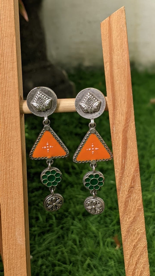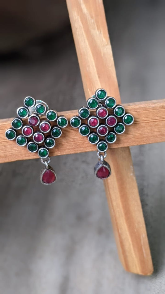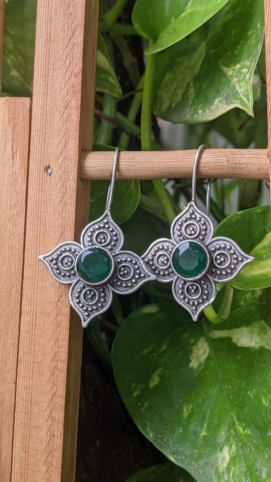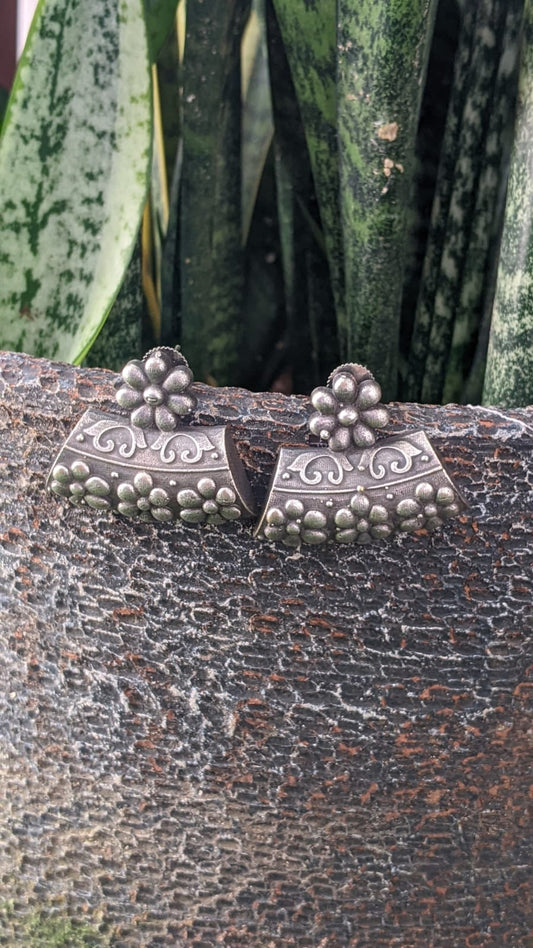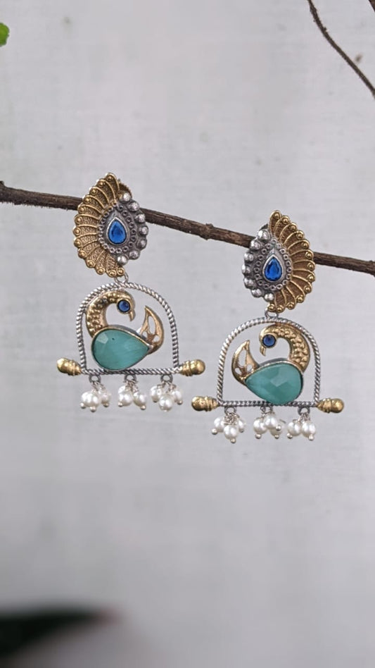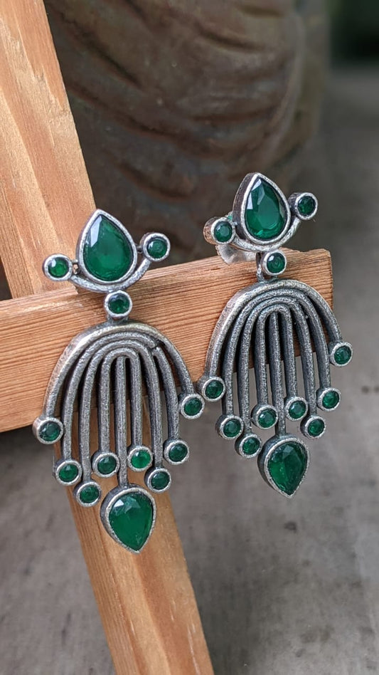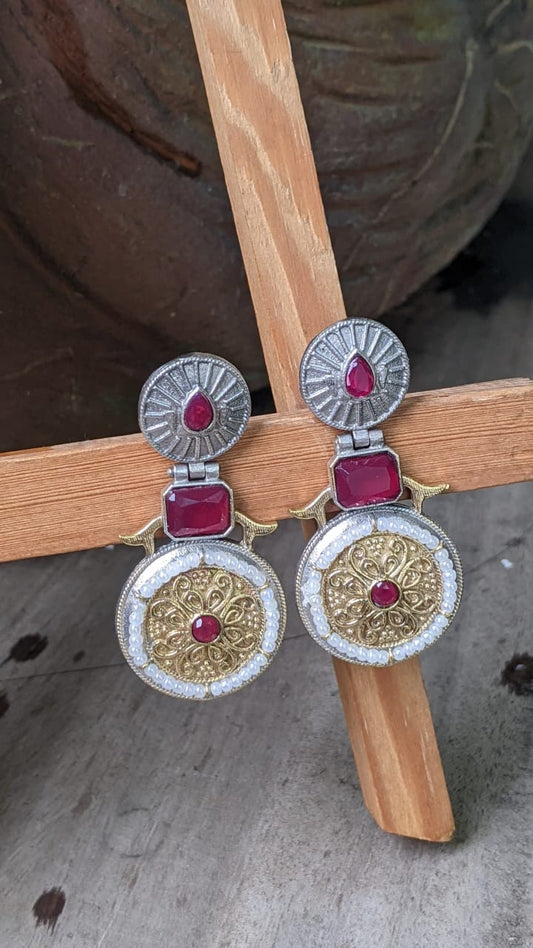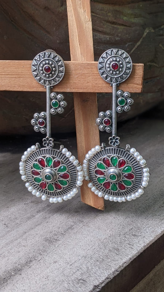 Meenavati | Silver Plated | Dual Tone Kemp Statement Earrings