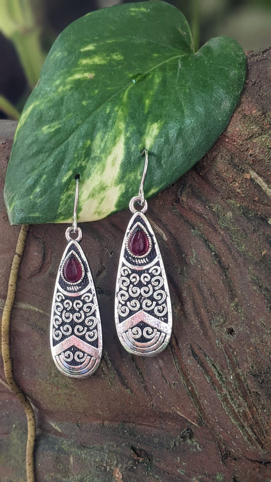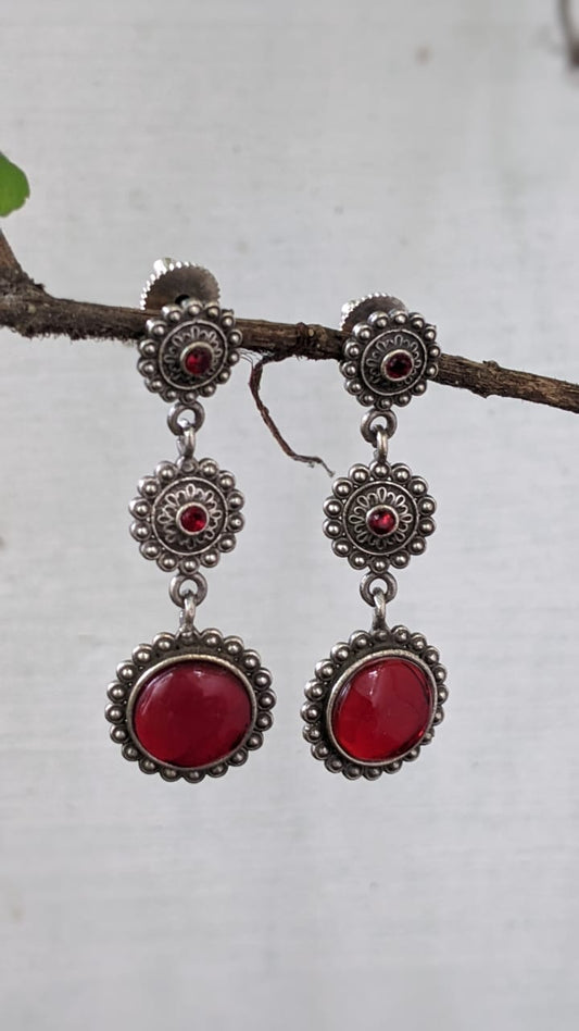 TRIPLE LAYER RED STONE EARRINGS