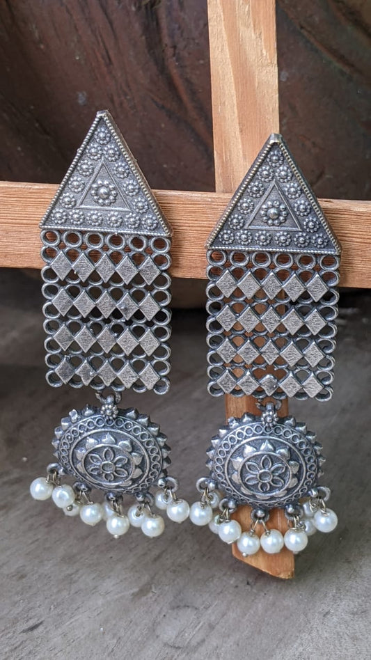 TRIBAL LONG PEARL EARRINGS