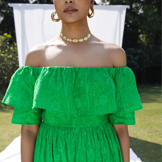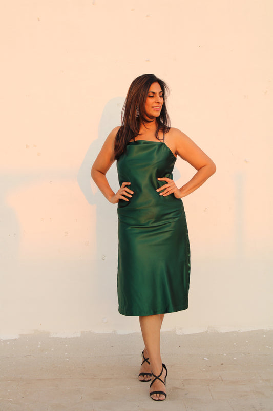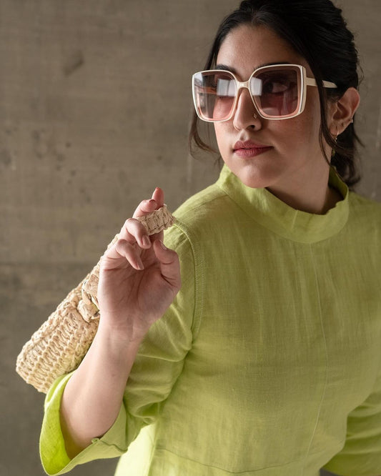 Vibrant Lime Green Back Zip Mid Linen Dress
