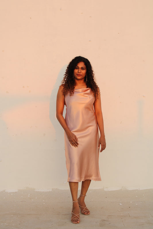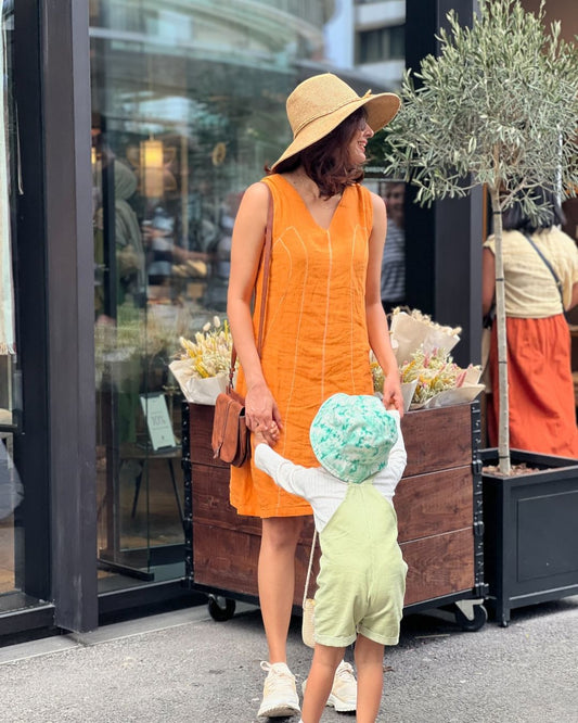 Out of StockLinen V-Neck Sleeveless Orange Mid Dress