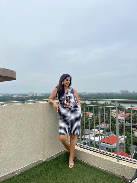 Black & White Cheetah Embroidered Sleeveless Cotton Dress