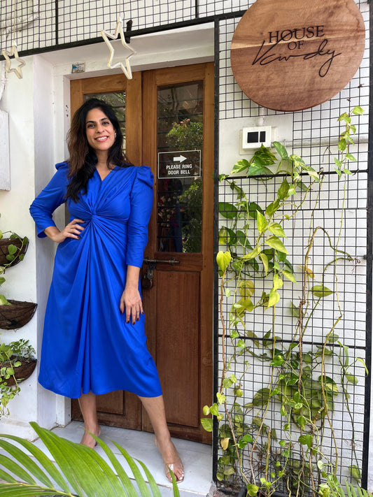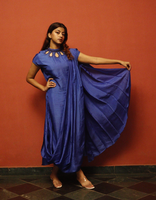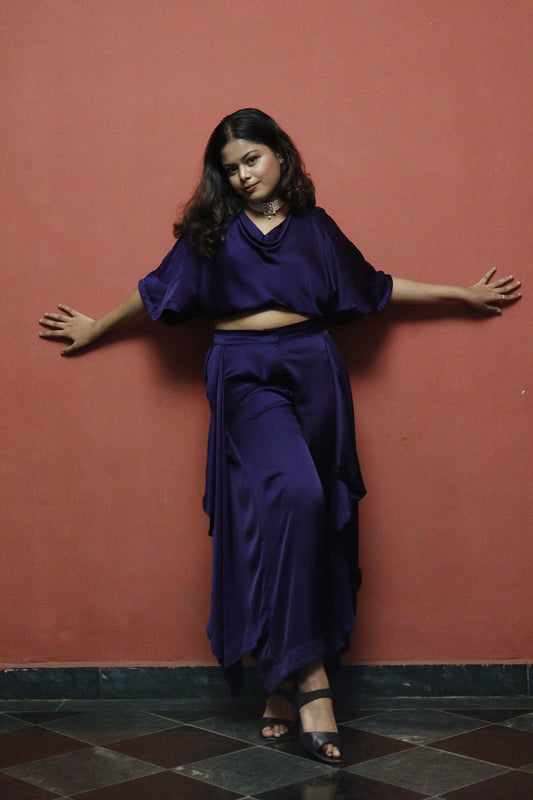 Berry Blue Drape Top & Flared Trouser Coord Set
