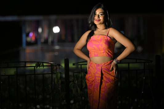 Orange and Pink Floral Print Crop Top & Drape Skirt