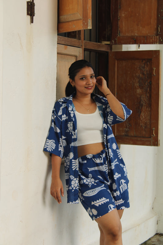 Tropical & Aqua Blue Shirt and Shorts Coord Set