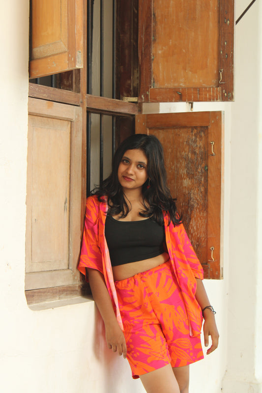 Tropical Orange & Pink Shirt and Shorts Coord Set