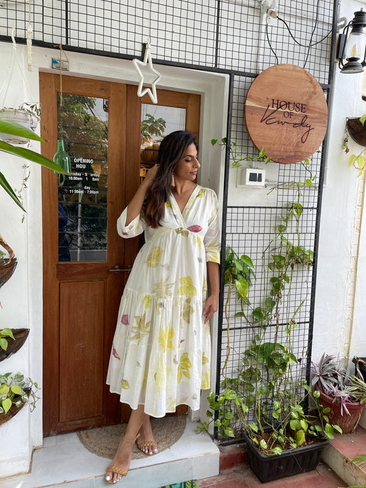 Mango and Leaf Print White Crop Top & Drape Skirt