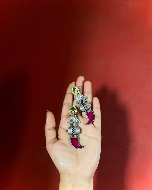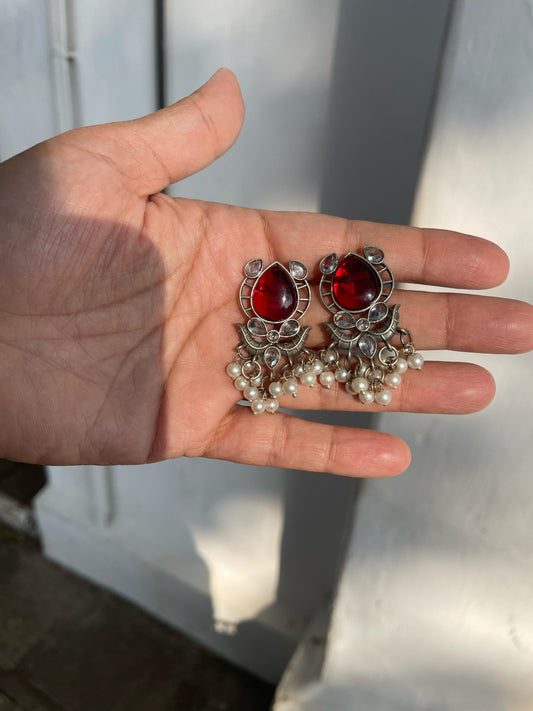 Out of StockAarohi - Red & Silver Mughal Earrings