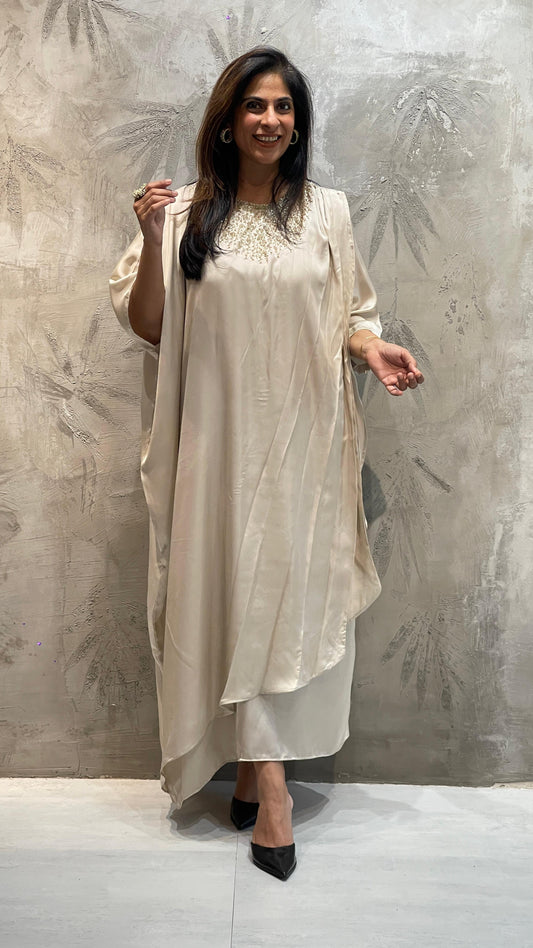 Off white gold neck Embroidered kaftan