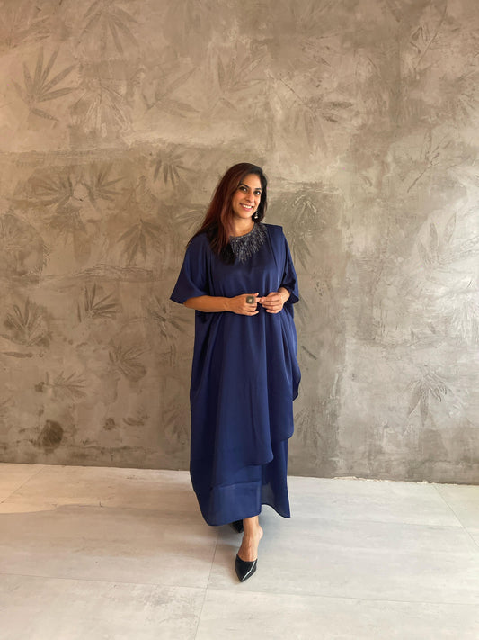 DARK BLUE GOLD NECK EMBROIDERED KAFTAN