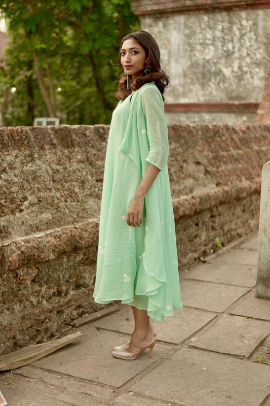 The Pankhuri Cape Set | Hand-Embroidered Linen Ensemble