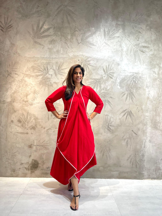 Red Butterfly Dress with Pink Piping
