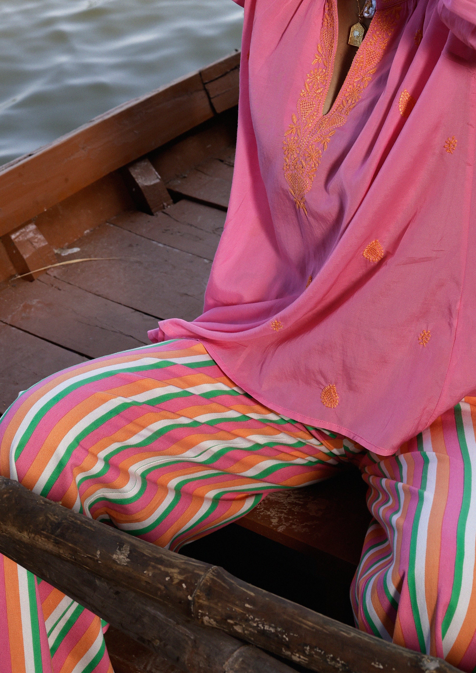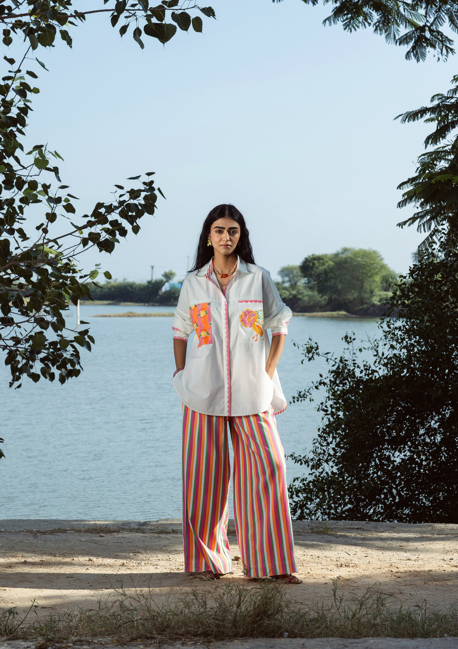 Elevate your everyday wardrobe with these versatile multi-color stripe pants. Featuring a dynamic blend of hues woven into classic stripes, they effortlessly transition from casual outings to relaxed office settings. The comfortable fit ensures all-day wearability, while the timeless pattern adds visual interest to any ensemble. Perfect for mixing and matching with solid tops or layering pieces, these pants are a wardrobe essential that brings both style and practicality to your collection.
