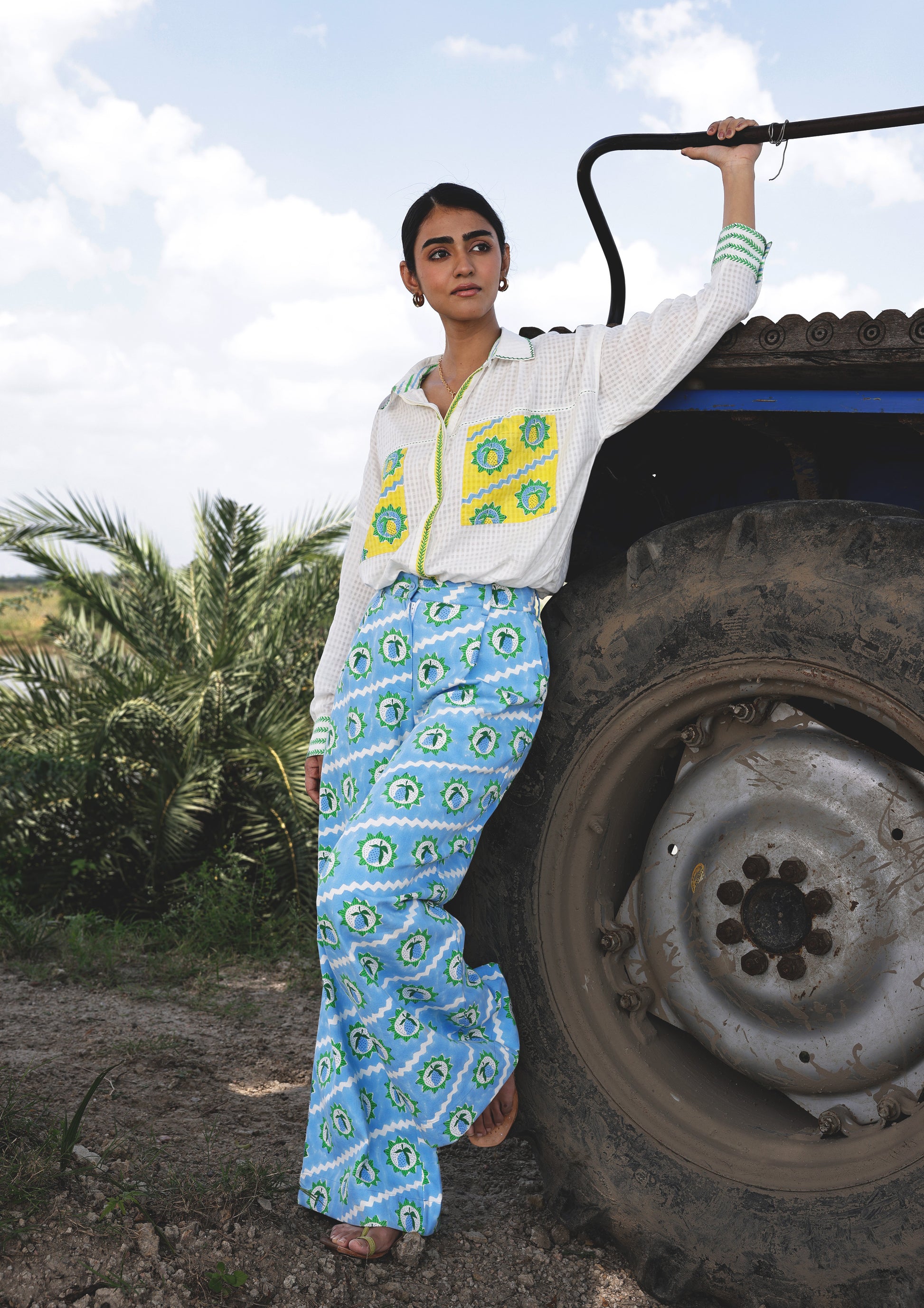 Embrace effortless elegance with these AMER Pants, featuring a striking mango block print that celebrates traditional craftsmanship. The relaxed fit offers comfort for everyday wear, while the intricate hand-printed design adds a touch of artisanal charm. Perfect for those who appreciate timeless style with a contemporary twist, these pants transition seamlessly from casual outings to laid-back gatherings. The breathable fabric keeps you cool and comfortable throughout the day, making them an essential addition to your wardrobe.