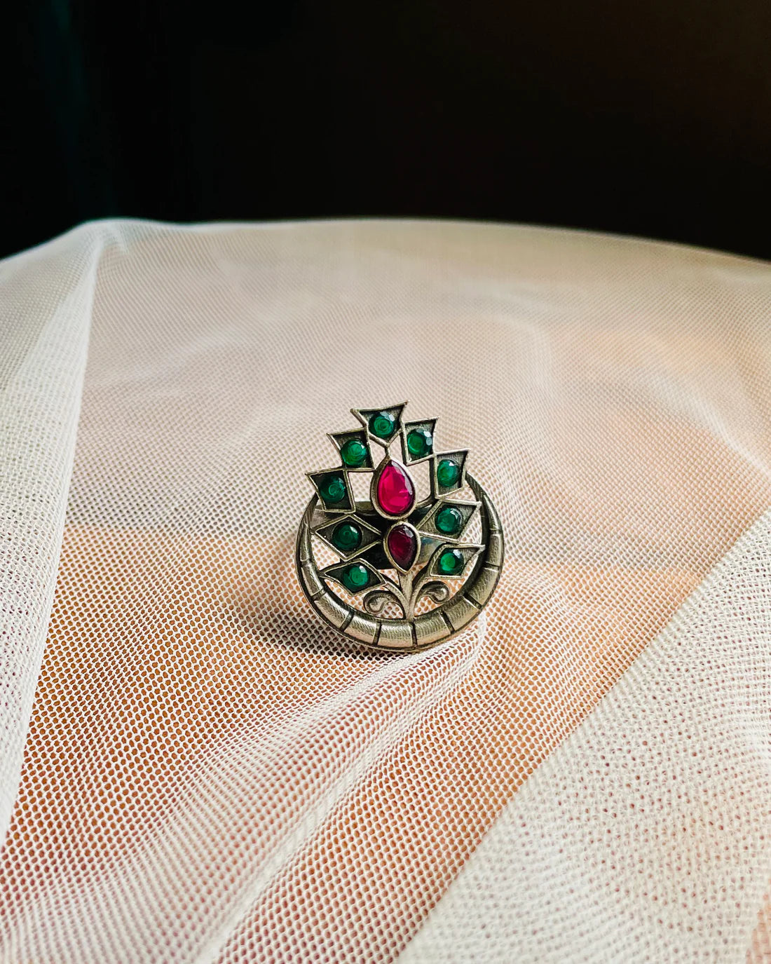 Arudhra|Silver Plated Multicolour Stone Adjustable Ring