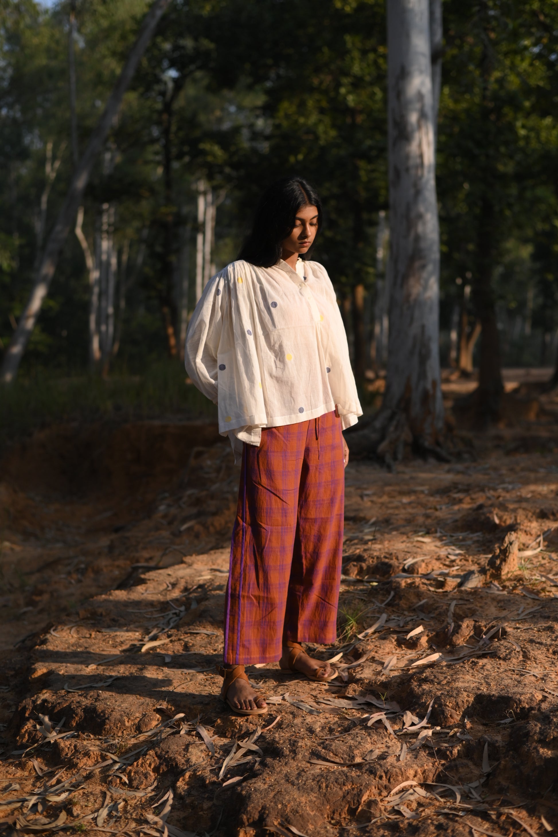 This airy short top is crafted from soft, breathable cotton in a natural ivory tone, detailed with delicate hand-printed dot motifs for a subtle, artistic touch. Designed with a relaxed, boxy silhouette and gentle gathers, it offers effortless comfort and a modern, understated look.