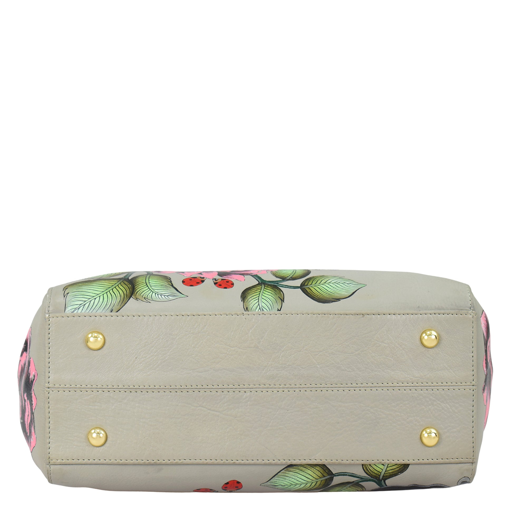 Carry your essentials with understated elegance. This handpainted medium tote features unique botanical artwork on supple leather, making each piece distinctly yours. Perfect for daily adventures, the spacious interior accommodates everything you need while the sturdy handles ensure comfortable carrying. The natural leather develops a beautiful patina over time, telling the story of your journeys. A timeless accessory that blends artistry with practicality.