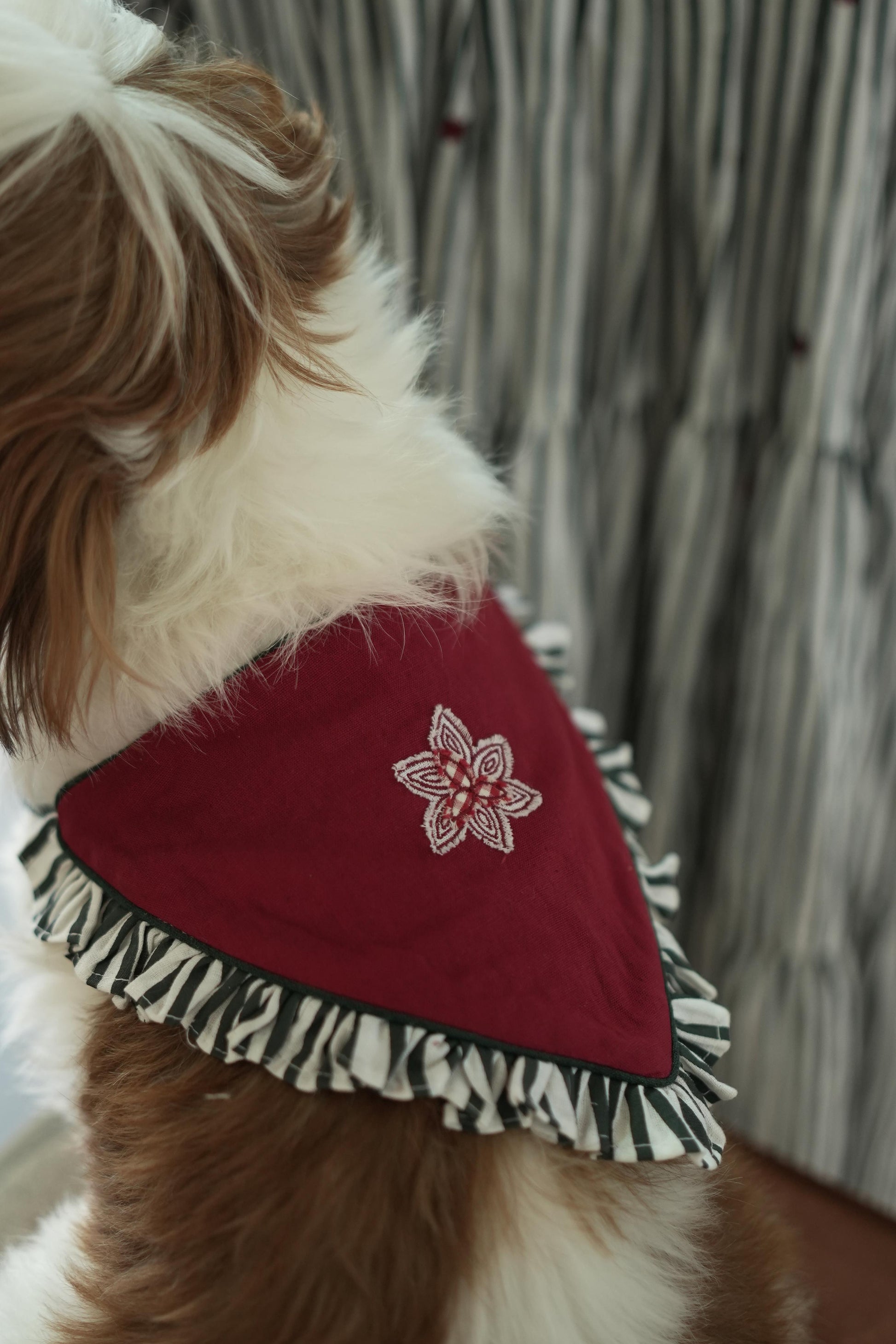 Transform your pet's holiday look with this charming frilled Christmas flower bib. Featuring delicate festive florals and an elegant ruffled edge, it adds a touch of seasonal sophistication to any furry friend. The soft, comfortable design ensures your pet stays cozy while looking picture-perfect for celebrations and gatherings. Perfect for creating memorable holiday moments with your beloved companion.
