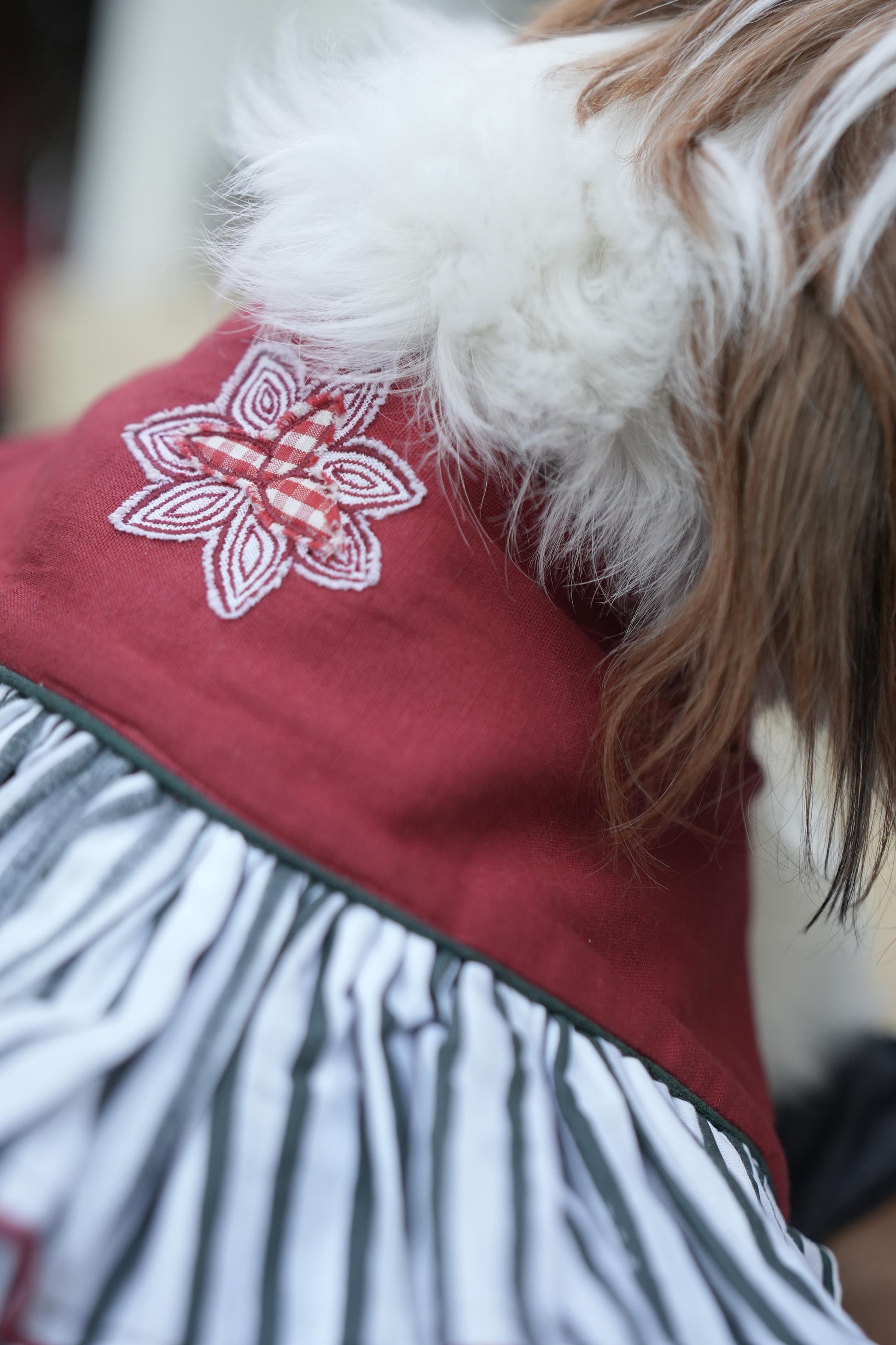 Transform your pet into a festive vision with this enchanting layered frilled dress, perfect for holiday celebrations. Crafted with delicate ruffled tiers that create graceful movement and visual depth, this dress brings elegance to any Christmas gathering. The soft, flowing layers provide comfort while the charming design makes your furry friend the center of attention. Ideal for photos, parties, or simply spreading seasonal joy, this dress combines style with practicality for pets who deserve to celebrate in style.