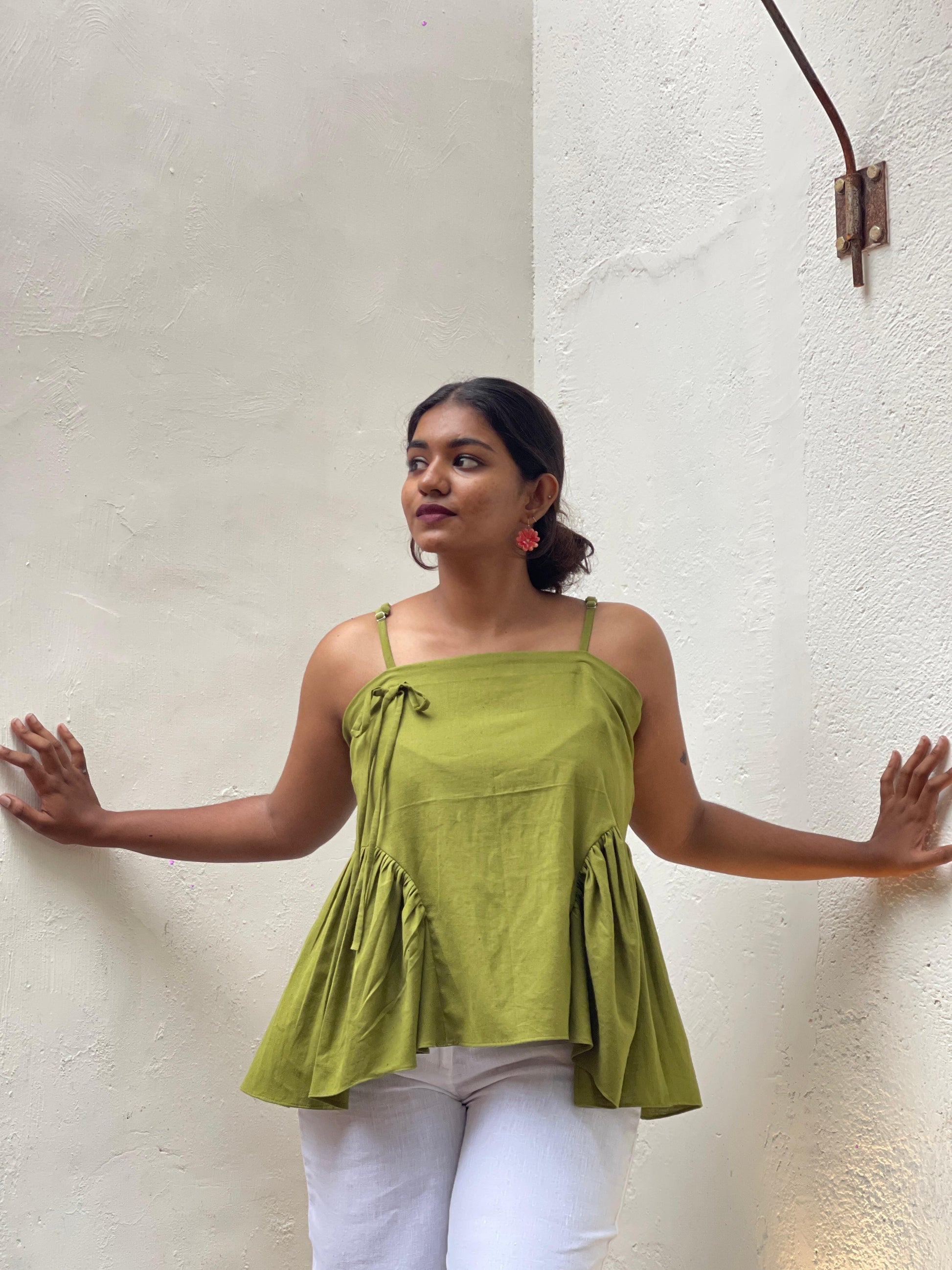 Embrace understated elegance with this serene leaf green top. The soft, muted hue evokes natural tranquility while remaining versatile enough for everyday wear. Crafted for comfort and effortless style, this piece transitions seamlessly from casual outings to relaxed gatherings. The calming green tone complements various skin tones and pairs beautifully with neutrals or complementary colors. Perfect for those seeking a wardrobe staple that feels both soothing and sophisticated.