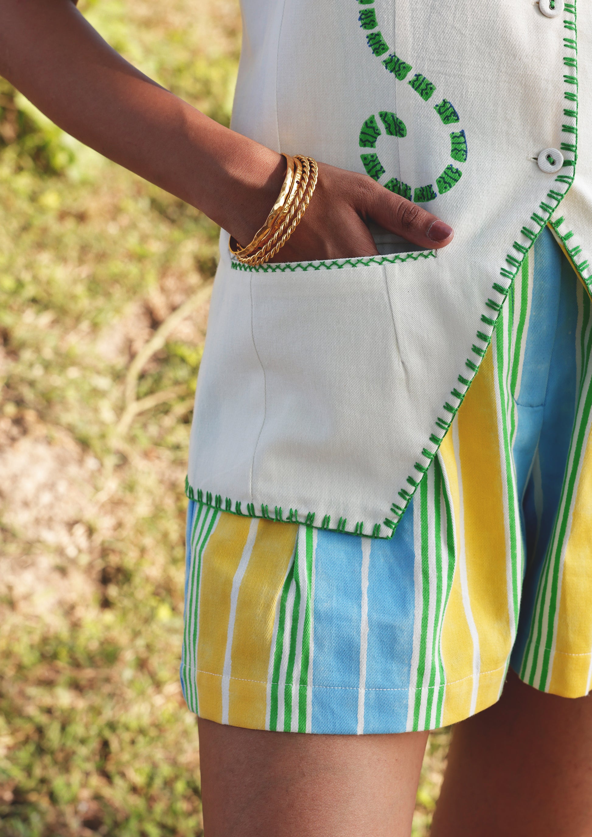 Embrace effortless comfort with these versatile multi-color stripe shorts. Perfect for warm days, casual outings, or relaxed weekends, they blend style with practicality. The vibrant striped pattern adds visual interest to any wardrobe, while the relaxed fit ensures all-day wearability. Whether you're heading to the beach, running errands, or simply unwinding at home, these shorts deliver a laid-back aesthetic without compromising on quality. A timeless piece that transitions seamlessly from season to season.