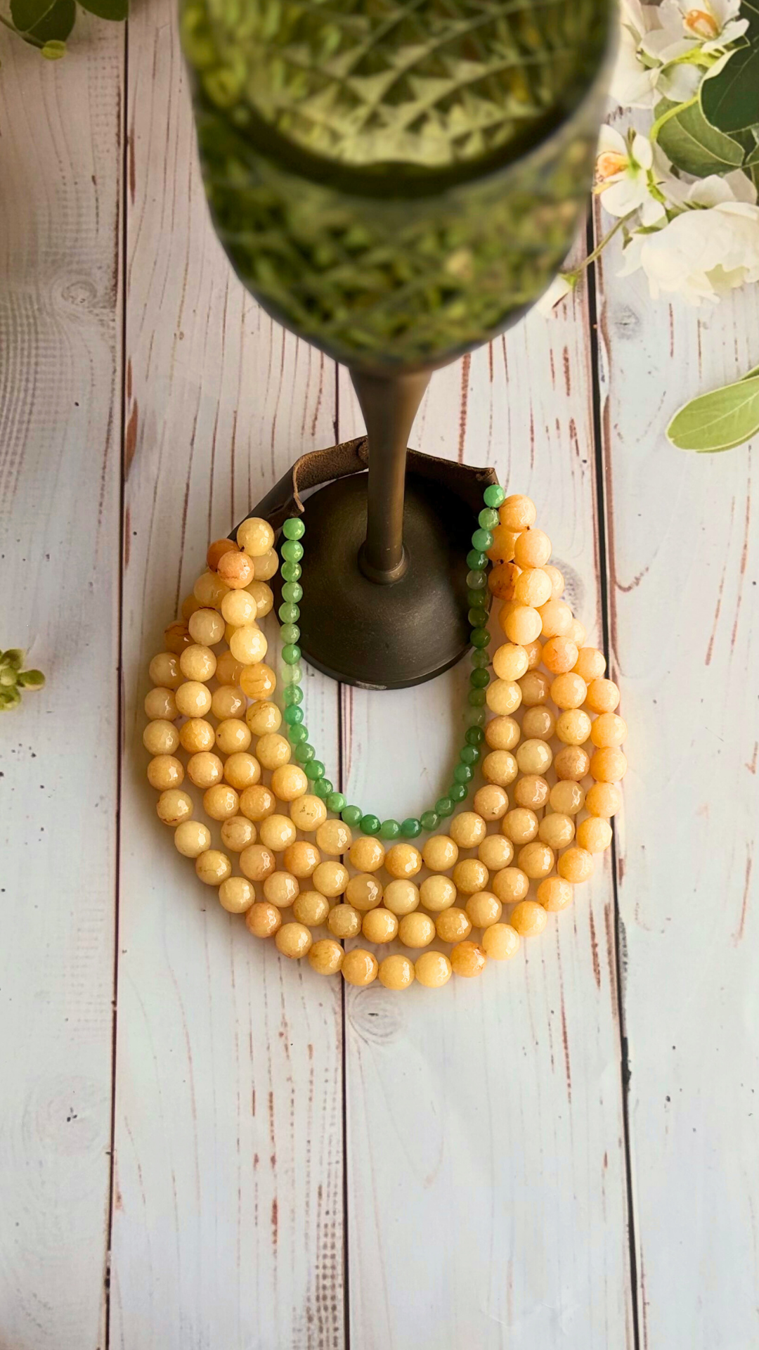 Tarangini Imperial is an elegant neck piece adorned with carefully selected semi-precious stones that catch the light with subtle sophistication. Each stone is chosen for its natural beauty, creating a harmonious blend of color and texture. Perfect for adding a touch of refined elegance to both everyday wear and special occasions, this piece brings a sense of calm grace to your jewelry collection. The timeless design ensures it pairs effortlessly with various outfits, making it a versatile addition to your accessories.
